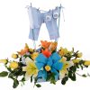 Arreglo de flores, amarillas girasoles y flores adicionales, con Peluche y Globo burbuja.