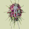 Arreglo de flores en tonos cremas, sobre trípode de fierro alto 2.10mts. aprox