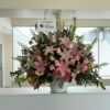 Arreglo de girasoles y rosas sobre trípode de metal tiene 1.80mt. de alto por 1.00mt. de ancho.